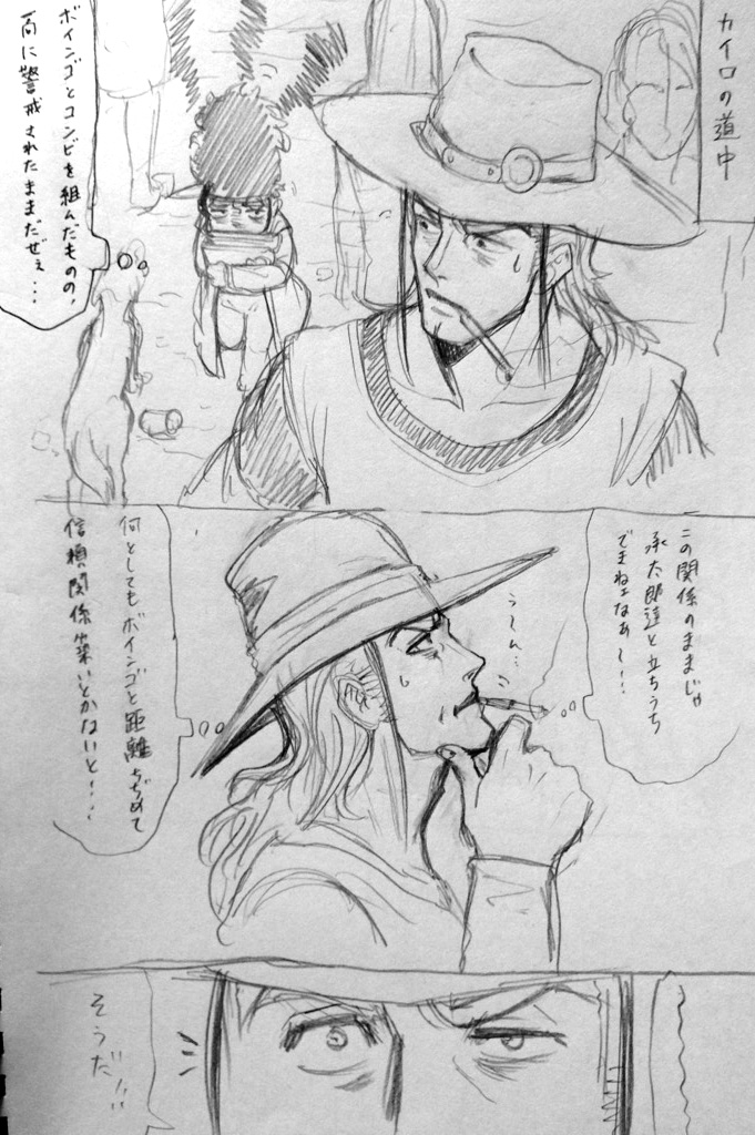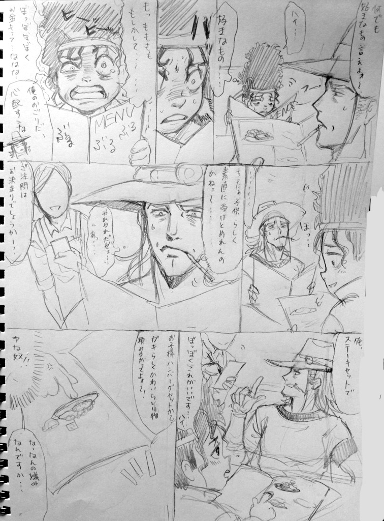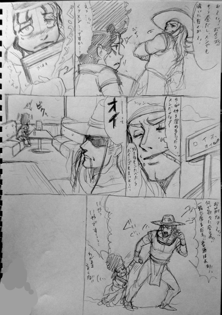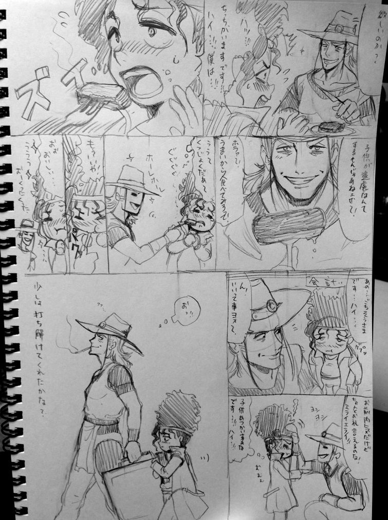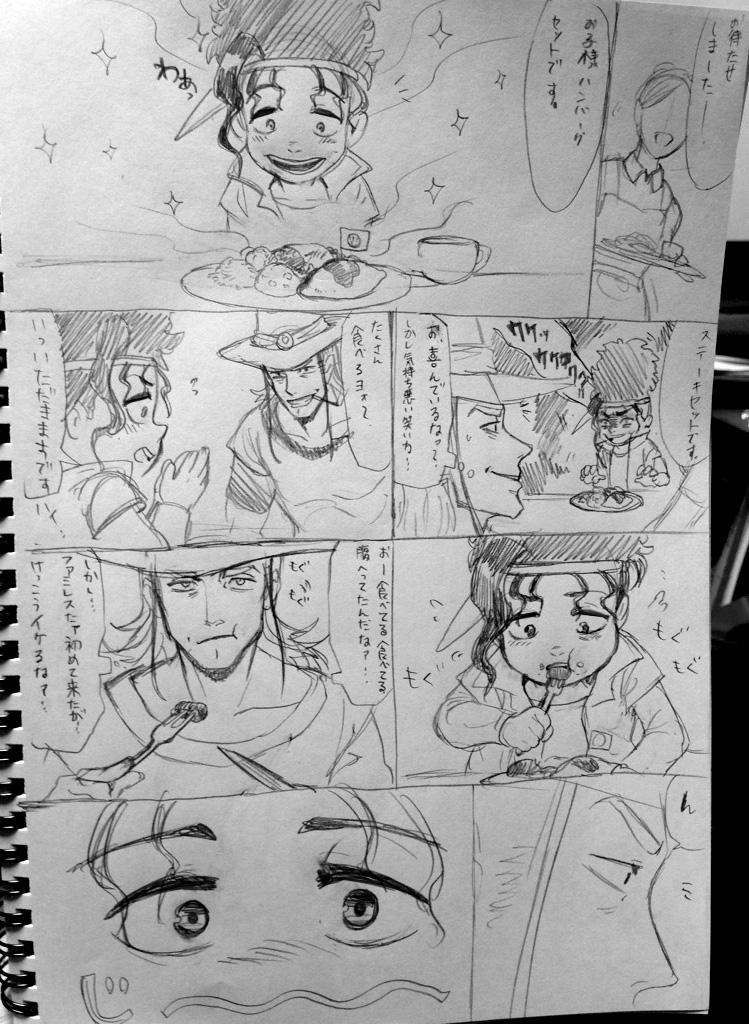 じょじょさん部のはなし その他 2017年10月29日 0 拍手送って下さった方々ありがとうございました!ヾ(˹ᆺ˺✿)ノ゙ホルホース!ボインゴ!コンビーーー!!こんにちはお久しぶりのゆめこです。今回の記事はレア関係ではなく、なんとまさかのジョジョ関連です。最近ジョジョのアニメを見始めたのですが・・、面白いですね~!今4部を見ている途中です。ジョジョは昔小中学校ぐらいの時、購読していたジャンプで6部が連載しましてそれを見たのですが、絵柄がくどいしグロいし話もよくわからないしで完全にトラウマ一歩手前で…その後はジョジョに触れる事はありませんでした。ジョジョが人気コンテンツなのは知っていますが、ファーストコンタクトの印象が悪すぎて今まで見ず仕舞いで・・今回友達がジョジョの脱出ゲームに行きたいという事だったので改めて見てみよう!と思い、アニメを見てみました。そしたら面白くて面白くて。特に3部・・!スタンド能力の対決、キャラ、ストーリー全て面白いですね~。承太郎渋すぎ!かっこいい!ポルナレフ、トラブルメーカーだけど真っ直ぐな所がかっこいい!イギー、犬なのにスタンド使い!いい!とみんな総じて好きだったのですがじわじわと・・あ、これは好きになっているかもしれんというのが出来ましてねお気づきかもしれませんが、この記事に載せたイラストの「ホルホースとボインゴ」コンビです・・_(:З」 ∠)_まさかの敵キャラ・・主人公側ならまだしも・・えぇ・・。ホルホースはDIO様に金で雇われた刺客で銃のスタンド使い。女好きの軽いやつで世渡り上手なタイプのキャラで、ボインゴはもともとは兄であるオインゴと行動を共にしておりまして、予知能力スタンドの持ち主で性格は超内向的なキャラです。ホルホースはボインゴの予知能力を見込んでコンビを組んで承太郎一行を倒そうとするんですがボインゴが兄以外には全然懐かなくて・・特にホルホースは、ほぼ誘拐という形でボインゴを連れて来たんですが、(寝込みを襲いロープで縛り上げトランクに詰め込むといったものです)当然警戒されるわよなと・・。このホルホースボインゴコンビ、中々の凸凹加減で凄く好みなんです・・そしてボインゴの予知能力のトンチンカンさに振り回されてる、ホルホースおじさんは見ていて面白いなぁと笑このコンビ、ほんとうにいいキャラしてます…(//∇//)そして続きでは勢いで描いたホルホースとボインゴ漫画のせてます。もう沼に片足突っ込んでいるぞ…!/(^o^)\笑 勢いで描いたホルホースとボインゴがファミレスwで食事を共にするだけの内容です…大した内容なんてありません!ただただ2人の距離を少しだけ縮めたかったそれだけで描いたものです…/(^o^)\カメラで撮ったので画像が歪んでたりします、文字汚いです はっずぅ…/(^o^)\そしてジョジョキャラの難しさ…!慣れん…!いやはや、この沼にどこまで嵌まるかわかりませんが…深く嵌まってしまった場合は暖かい目で見守ってやってください・・。 [2回]PR