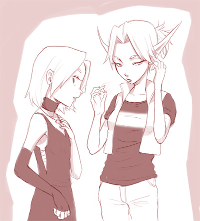 無題 未選択 2011年08月03日 2 どうもご無沙汰です!今年の夏は去年より暑さがマシですが、やっぱり暑いものは暑いですね。絵はアンバーとカルスの服とりかえっこ。この二人、髪の毛どピンクという共通点から・・(笑)どピンクは個人的にあまり好きな色では無いけど、カルスお姉ちゃんのピンクまじ素敵だ、大好きだ!!ていうかほんとピンクの髪の毛似合いすぎてどうしようかと思うぐらい!服はそれぞれミスマッチなんだけども、カルスは髪の毛くくったらこんな感じだろなーとかアンバーはこれぐらい長さありそうとか妄想できたので満足です(* ̄∀ ̄*)次は告知です。コロさん主催のレア社オフ会に参加します~。詳しくは↓をクリック!レア社オフ会詳細 アトランティス様もう色々と楽しみなんですが!オフ会だけのために東京へ行きますよ・・!お金がないので行き帰り夜行バスで行きますw体力なんてテンションで乗り切れるぜ!!ぼかぁ楽しみだなぁ~(*゜▽゜*)wwそれと夏コミでコロさんのスペースで見張り番させてもらう事になりました!その時に何か配布できればいいな~と思っています・・(理想)よかったら来て下さいませ!7月は色々やってました。絵かいたり、前に買ったPortal2やってたり・・・。絵はうろおぼえGLaDOSちゃん。Portal2ほんとおすすめです・・!!ストーリー展開も素晴らしいし、ゲームも面白いし、キャラもかわいいし、神ゲーです!衝撃受けました。面白すぎてほとんど寝ずにプレイしてましたwwぶっつづけでしたのはピニャータ以来だなぁ。エンディングを迎えたときは満足感に満たされて、やったったぞー!っていう気持ちにどっぷりつかりました。もうほんとお奨めです!ネタバレになるのであまり深くは言えませんが、あほの子の後半の病み度が半端ない。私はあの子をヤンデレと呼んでいます。(デレ・・・??)あとメンタリストというドラマもお奨めです~。面白い!続きで拍手返信です!↓ つづきはこちら [0回]