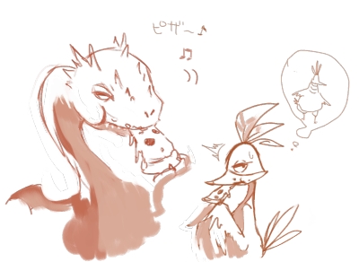 ていうかピザ屋にバイトしてたのに、今までピザ関連の絵かいてなかった;;ということでチリービリーのどちらかと(うろ覚え)ピザで激太りしたカズーイ。(さっき”げきぶとり”を変換したら”劇部トリ”ってなった;笑)