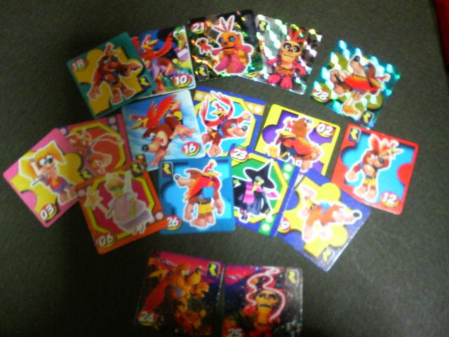 小学生の時にガチャポンで手に入れたものです。きらきらのがあったり、2枚並べて一枚の絵が完成するというのがあったり。けっこう綺麗に印刷されてて、あまりみかけないポーズがあったりで見ごたえあります*+。+