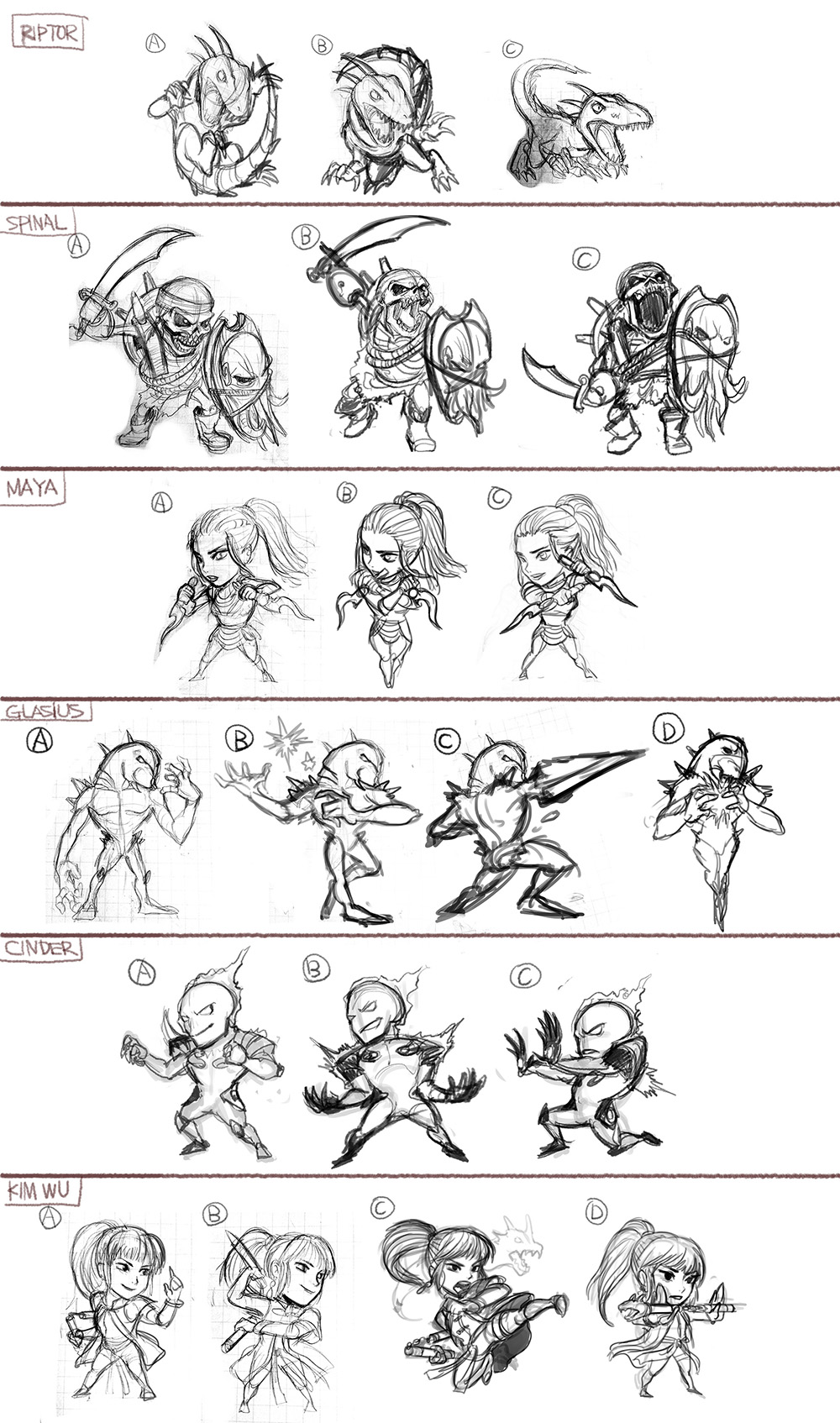 KIキーチェーン第2弾のデザイン キラーインスティンクト 2018年09月30日 0 前回の記事や拍手してくださった方々ありがとうございます!久しぶりにサイトを更新しました!リンク集にわへっぷさんの「かわむきき」様を追加です。リンク貼るのが遅くなってすみません・・!;;こちらのサイト様はドンキーメインでバンカズやコンカー、ユカレイを取り扱っているイラストサイトで、原型も擬人化もめちゃくちゃかわいくて萌えも詰まったサイト様です・・!是非飛んでいってください。(`・ω・´)いやはや、リンク貼るのが久しぶりすぎて感動すら覚えますねぇ。近年はSNSが主流なので、HPを作ったり持ってたりしても見に来る人はいるのか?と思ってしまう。企業とかのHPは見るかもしれませんが、わざわざ個人サイトを検索して見る方っていらっしゃるのでしょうか。特に自分のはマイナージャンルなのでそんな事を思ってしまいますね・・。でもHP文化大好きさ・・あとあと!イラストも更新しました。KIのキーチェーン第2弾のイラストとグーリーズ。グーリーズはいつものです笑私、ほんとリーパー率高いな・・。でも好きだから仕方ない・・_(:З」 ∠)_グーリーズ遊んだ事ある方、どうか描いてくださいお願いします。(切実====================================話題は変えて本題へ。以前デザインしたEIGFTY SIXED様の「Killer Instinct キーチェーン」。その第2段が以前発売されましたので、そのデザイン画の方を載せたいと思います~。 EIGFTY SIXED【KIキーチェーン】のページ第2弾のキャラは、リプターちゃんにTJコンボ、スパイナル、マヤ、キムウー、グラシアス、シンダーの超個性派ラインナップです!リプターちゃんにスパイナルも入ってて、今回かわいい子揃い過ぎてない?一気に出して大丈夫??と変に心配になりました笑シンダーもいるしで・・非常に私得なラインナップで描いてて楽しかったです(*´ー`*) 続いてはこのデザインになる前のラフ案です~。まずはTJコンボを描いてとの事だったので、まずはこの人から!TJコンボの技をイメージできるように動きのあるポーズも描いてみたのですが、オーソドックスに待機ポーズが選ばれました。 TJコンボが終わって、次は残りのキャラ達のラフ案を作成しました。自分が欲しいと思えるように描いている訳ですが、この中でもお気に入りというものもあるわけで・・笑あちらの方に見てもらって、どの案がいいか選ばれるのですが自分のお気に入りが選ばれなかった時は「そっちか~」と少し残念に思ったり・・!個人的にはリプターちゃんはB、シンダーBかCが好きでした。でラフが決まったので清書しまして。途中、シンダー、マヤ、グラシアスは修正要望があったので、ラフと若干ポーズが違っています。あと前回の時に悩んだ、KIキャラをデフォルメした時に細かい装備をどれぐらい省くかという所では、まぁまぁ今回は大丈夫だったです、スパイナル以外は・・スパイナル、体に色んなものを付けすぎ&ディティール細かすぎて・・!ベルトや腰布のタータンチェックとかばっさりと捨てましたw最低限でもそれらしく見えるようにはなったかな?とは思います。 これが出来上がって届けてくださったものです~。結構細かくなったにも関わらず、無事に再現してくれてて嬉しい・・!もうちょっと後ろの舵を大きくすればよかったかなと思ったり。顔周りのアクセサリーも色を変えてはいましたが、製造できなかったのか体の方と同じ色になっていますが気にならない感じです。海外通販ですが、もしよかったら購入して下さると嬉しいです。他にも別の方がデザインされたリプターちゃんTシャツ等もありますので!私もリプターちゃんTシャツ買わなければ・・Tシャツは着ると消耗するので自分は取っておく派です。 [4回]
